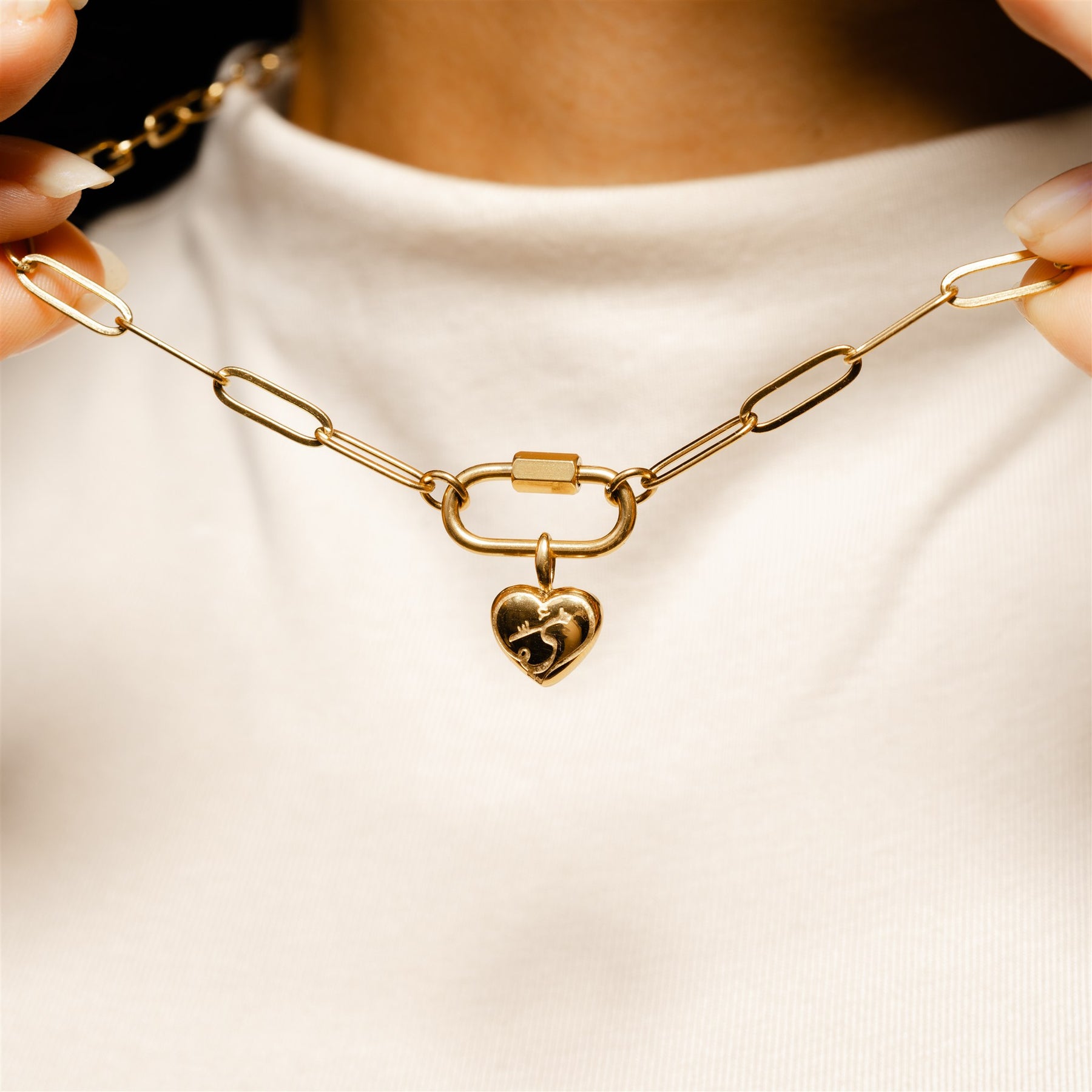 Diese Halskette zeigt einen goldenen Anhänger mit dem Ausdruck "Alhamdulillah" in der arabischen Kalligraphie. Der Satz bedeutet "Lob für Gott" und wird oft ausgedrückt, um Allah Azawajal unter allen Umständen Dankbarkeit zu zeigen. Diese Halskette erinnert sich daran, Allah in allen Lebenssituationen immer zu mieten.
