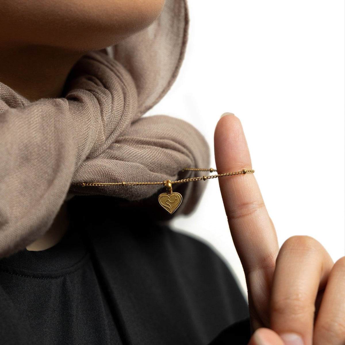 Diese Halskette zeigt einen goldenen Anhänger mit dem Ausdruck "Alhamdulillah" in der arabischen Kalligraphie. Der Satz bedeutet "Lob für Gott" und wird oft ausgedrückt, um Allah Azawajal unter allen Umständen Dankbarkeit zu zeigen. Diese Halskette erinnert sich daran, Allah in allen Lebenssituationen immer zu mieten.