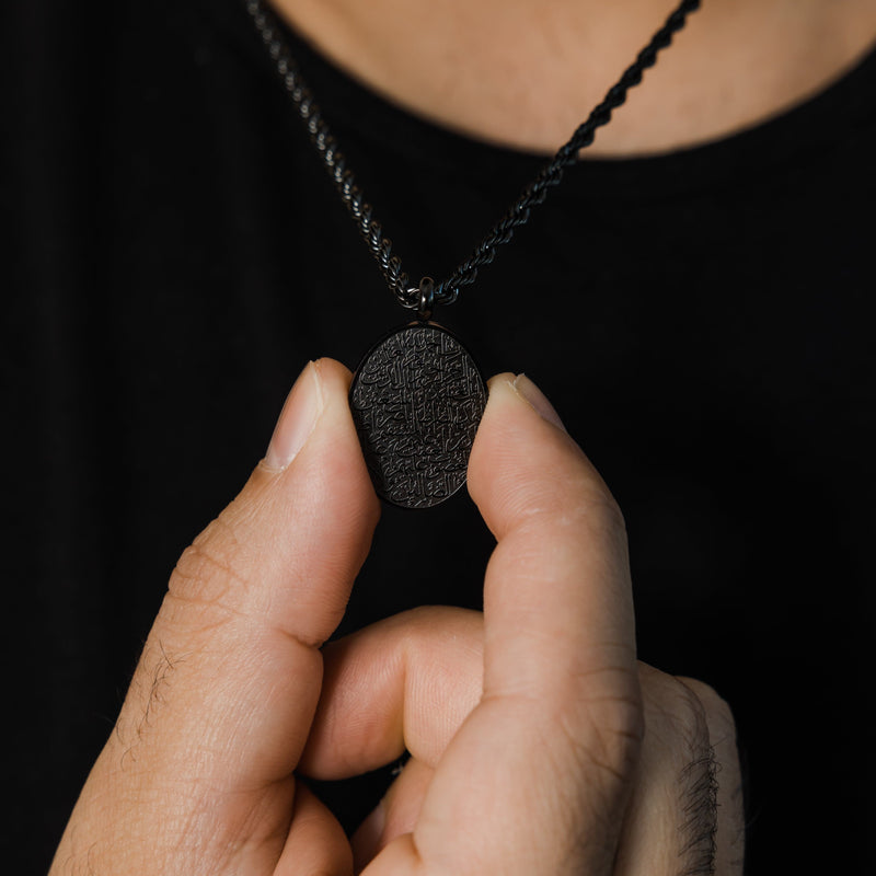 Das erste Kapitel des Korans gilt als Licht aus dem Himmel und als Mittel gegen Krankheiten. Dieses Stück verwandelt dieses erste Kapitel des Korans in einen großartigen ovalen Anhänger, der immer dem Test der Zeit sowohl durch seine Gestaltung als auch durch seine Qualität widerstehen wird. Die al-fatiha ovale Halskette soll Sie in allen Lebensweisen begleiten, unabhängig von der Situation.